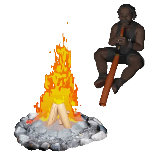 Gather beside the campfire for Marcus to play a song about the painting on his yiḏaki. He will then put the instrument aside to tell you the story, through to the next painting, when you can repeat the immersive process of scan and listen.